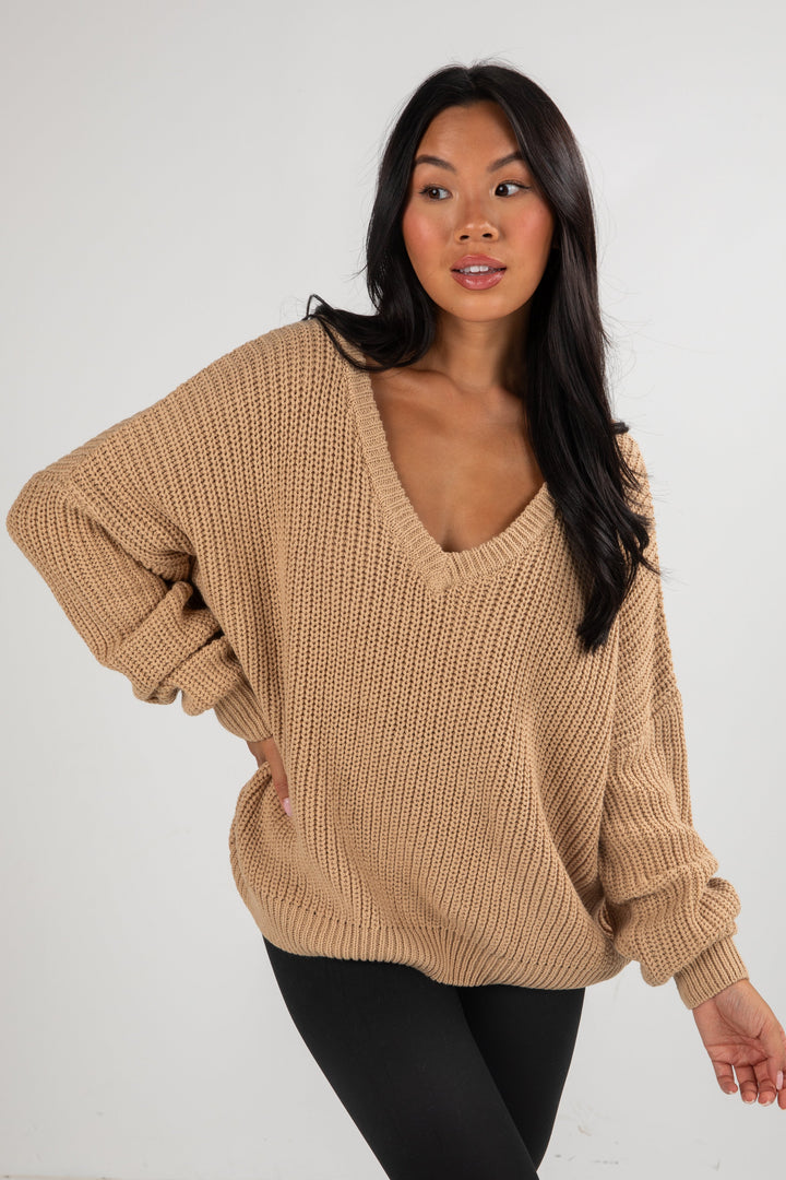 In Her Moment Beige Oversized Sweater