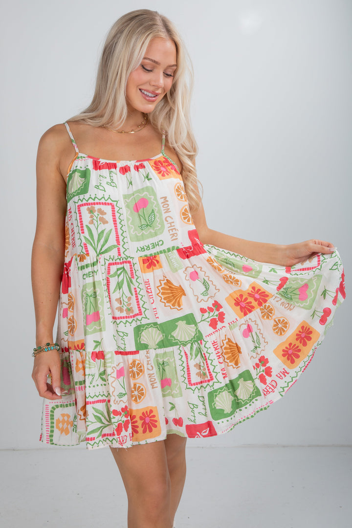The Everything I Love Ivory Tiered Mini Dress is a playful, breezy piece that’s made for sunny days! Featuring a colorful tropical print that pops against the ivory base, this dress brings effortless vacay vibes wherever you go. The adjustable spaghetti straps and tiered silhouette create a flattering, flowy fit that keeps you cool and comfortable. Perfect for brunch, beach getaways, or summer parties, this mini dress is an easy choice for vibrant, feel-good style!