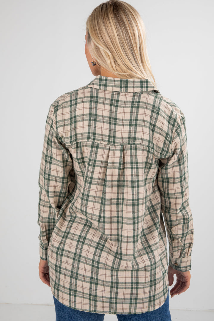 The Golden Hour Glow Green Plaid Flannel is a classic layering essential with a relaxed, effortless vibe! Featuring a timeless green plaid pattern and soft, breathable fabric, this flannel offers a comfortable, roomy fit and button-front closure. Perfect for layering over tees, pairing with jeans, or tying at the waist for a casual, laidback look!