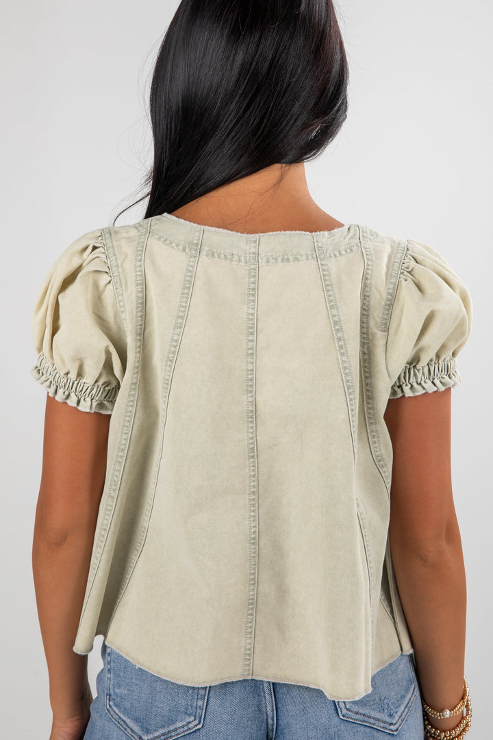 The Sweet Melody Sage Blouse is a feminine wardrobe staple with a modern twist! Featuring soft puff sleeves and a relaxed fit, this blouse offers effortless style and a flattering silhouette. The muted sage hue adds a subtle, versatile touch, making it perfect for pairing with jeans, skirts, or tailored pants for both casual and polished looks!