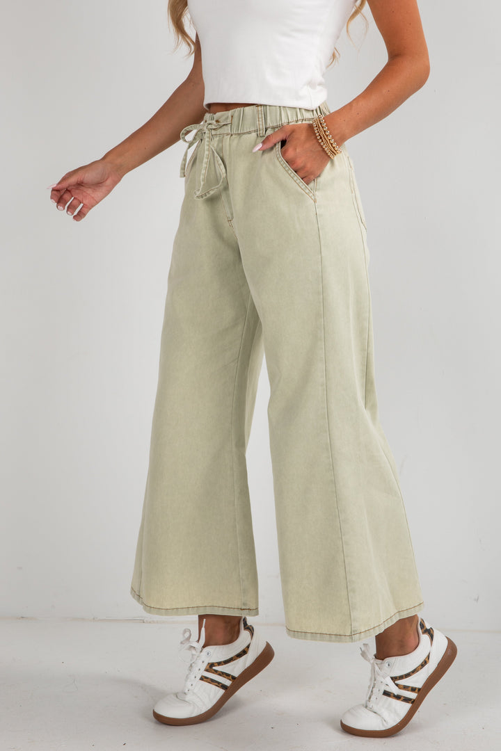 The Sweet Melody Sage Drawstring Pants are the perfect blend of comfort and style! Featuring a high-rise fit with an elastic waistband and adjustable drawstring, these pants offer a relaxed, flattering silhouette. The wide-leg cut adds effortless movement, while the soft sage hue makes them versatile for both casual and elevated looks. Pair with a tucked-in top or a cropped sweater for a chic, put-together outfit!