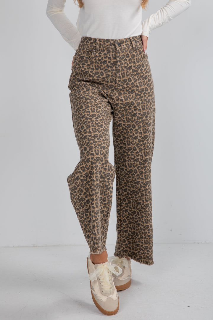 The Worth Your While Leopard Wide Leg Jeans are a bold, fashion-forward take on classic denim! Designed with a flattering high-rise fit and relaxed wide legs, these jeans combine comfort with statement style. The all-over leopard print adds a trendy, edgy vibe, making them perfect for dressing up with heels or keeping casual with sneakers. Stand out effortlessly in these versatile, eye-catching jeans that elevate any outfit!